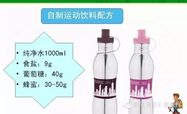 1、要及时准备水分;最好饮用运动饮料,自制运动饮料的配方。