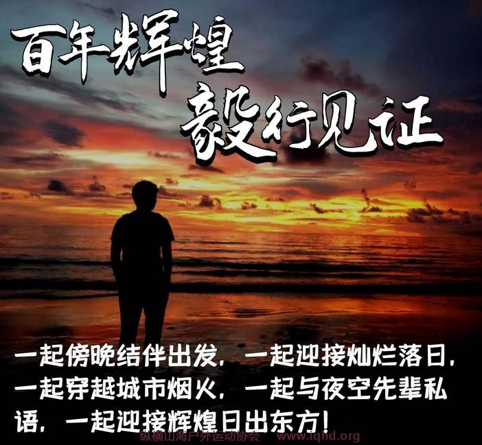 答:下午出发 一起傍晚结伴出发,一起迎接灿烂落日,一起穿越城市烟火,一起与夜空先辈私语,一起迎接辉煌日出东方。