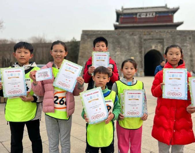 北京第二实验小学山海关学校田径队的王翊辰、刘卓溪与队员们也来体验与众不同的“长城赛道”。对孩子们来说,5公里的路程算不上轻松,但大家都勇于面对挑战,一个个小脸跑得通红,努力拼搏到达终点。