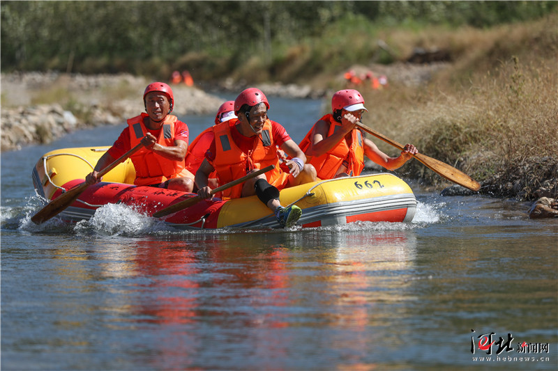 图为选手们在漂流比赛中的精彩瞬间。 记者孙也达摄