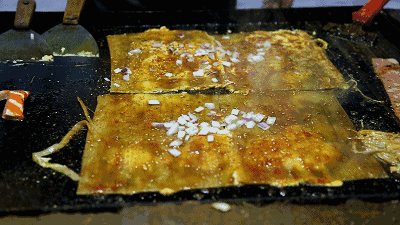 △ 一份完美的烤冷面是让蛋液均匀接触面片的每个角落
