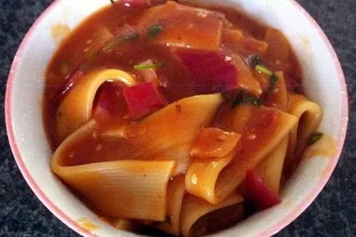 这是一种基本绝迹于江湖的门派,只口口相传于早期吃货之间,据传此门派起源自秦皇岛。冷面在铁板上烤热,刷涂辣酱后,浇上大量稀释过的番茄酱中,口感霸道。