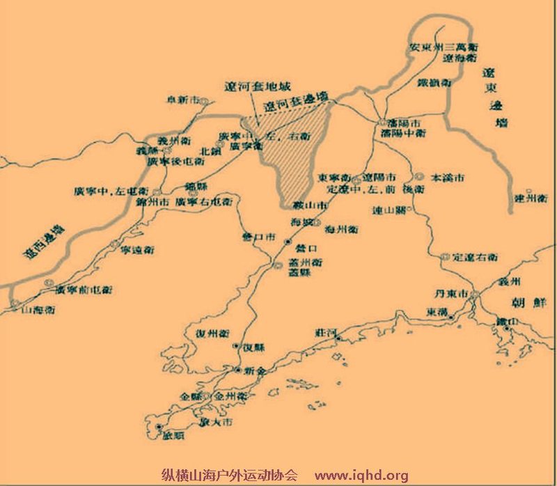 蓟镇长城,东起山海关,经唐山、天津、西至北京居庸关,是明代长城九镇最重要的一镇,谓“京都左辅”。辽东镇长城,起于辽宁省丹东虎山长城,经本溪、铁岭、沈阳、辽阳、鞍山、盘锦、阜新、锦州,葫芦岛,全长两千多公里。