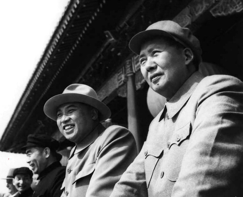 1954年10月1日,毛泽东同朝鲜首相金日成在国庆典礼上