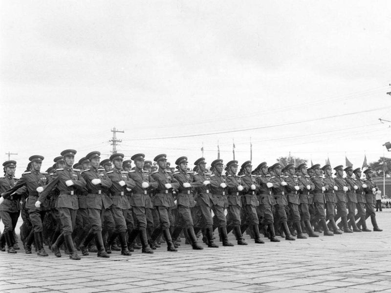 1955年10月1日,这次的国庆阅兵是人民解放军实行军衔制后的首次阅兵。受阅部队指战员身穿55式军服,佩戴肩章、领章,军容严整地通过天安门广场