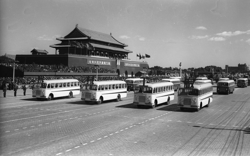 1958年10月1日,东北机械工业部队制造的各种交通汽车