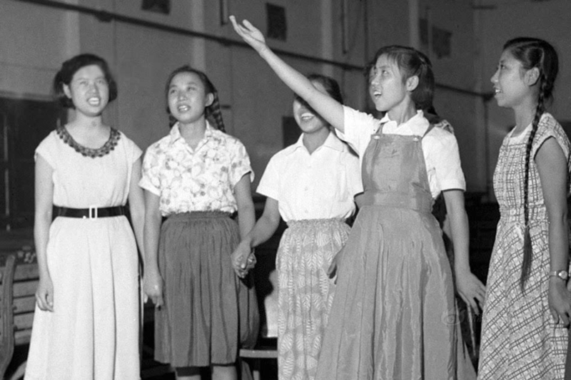 1959年9月,天津国棉四厂的俱乐部里,细纱乙班文娱小组正为迎接国庆十周年排练文娱节目。这个小组当年自编自演了100多个节目,其中已有8个质量较高的节目被他们选为国庆献礼节目。王旭东/新华社