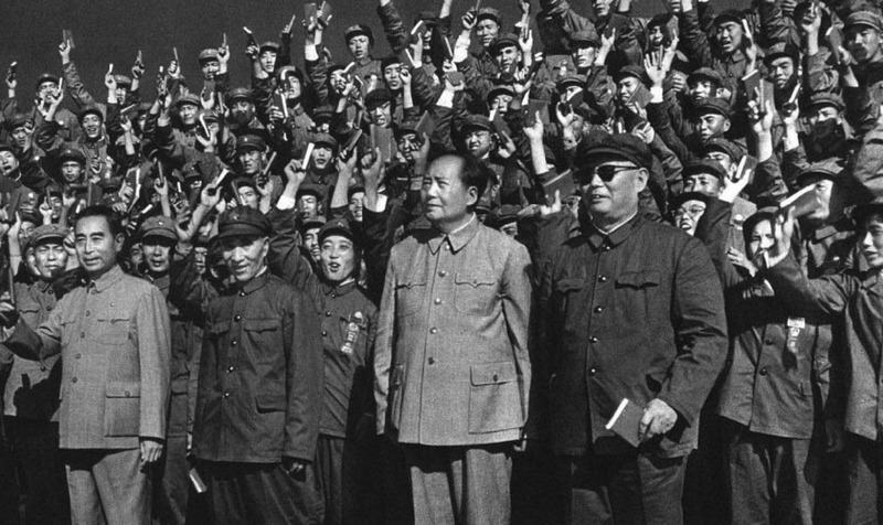1966年10月,毛泽东和他的“亲密战友”林彪,以及周恩来、叶剑英等在天安门城楼上接见部队国庆观礼代表