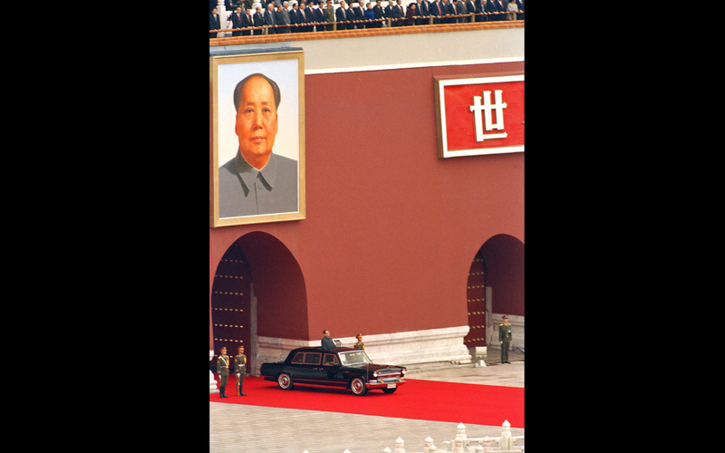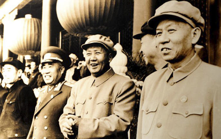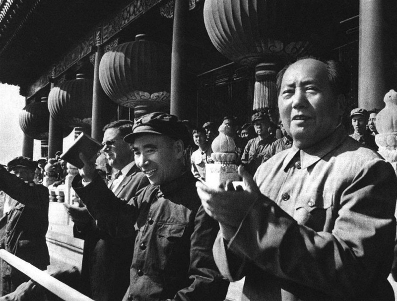 1966年10月,毛泽东和他的“亲密战友”林彪在天安门城楼上与人民共度国庆