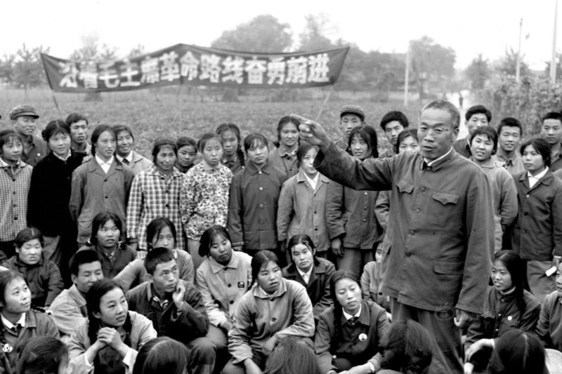 1976年国庆期间,北京芦沟桥人民公社岳各庄大队的人们,在一起回忆毛主席1958年视察公社时的情景。供图:新华社