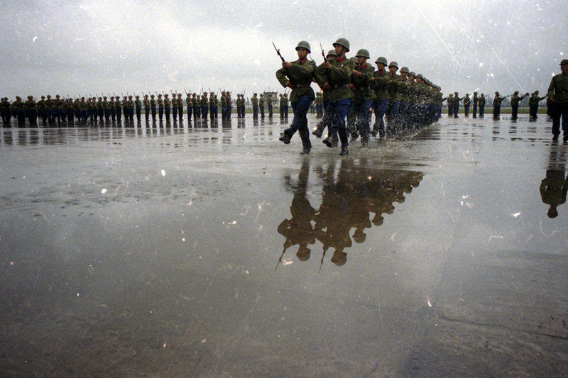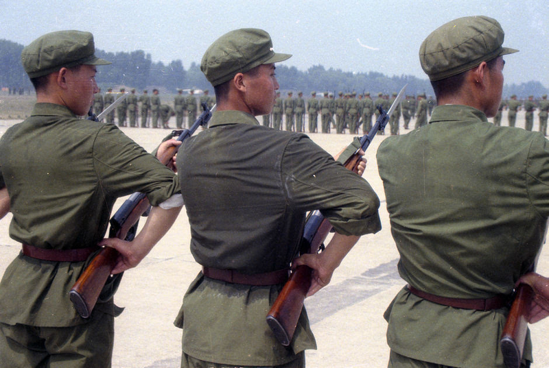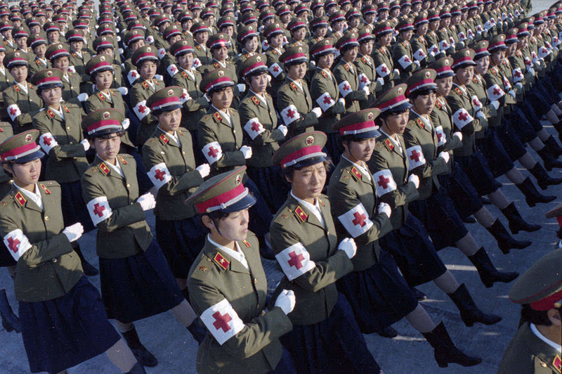 1984年,新中国成立35周年国庆阅兵前期,女兵正在训练