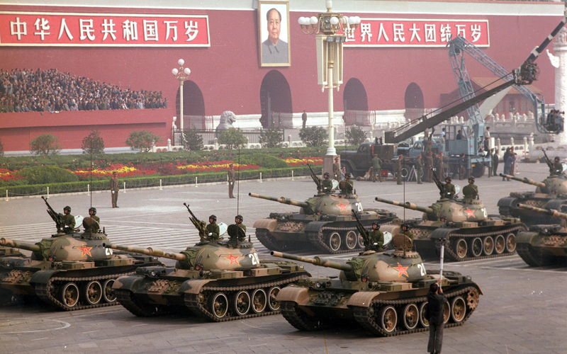 1984年10月1日,新中国成立35周年国庆阅兵,装甲兵坦克部队驶过天安门广场。