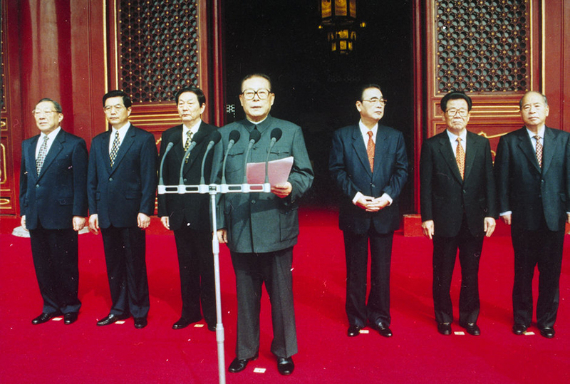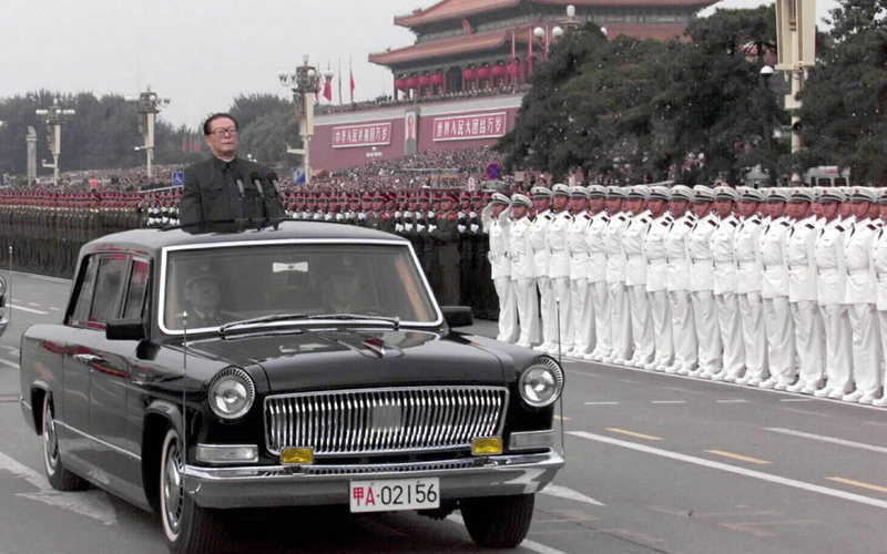 1999年10月,以江泽民为总书记的党和国家领导集体在国庆50周年庆典现场