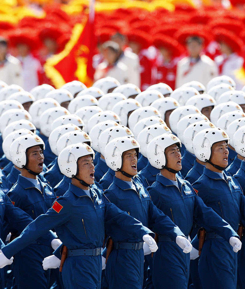 2009年10月1日,在中华人民共和国成立60周年阅兵仪式上,超过100000名的群众参与游行庆祝。