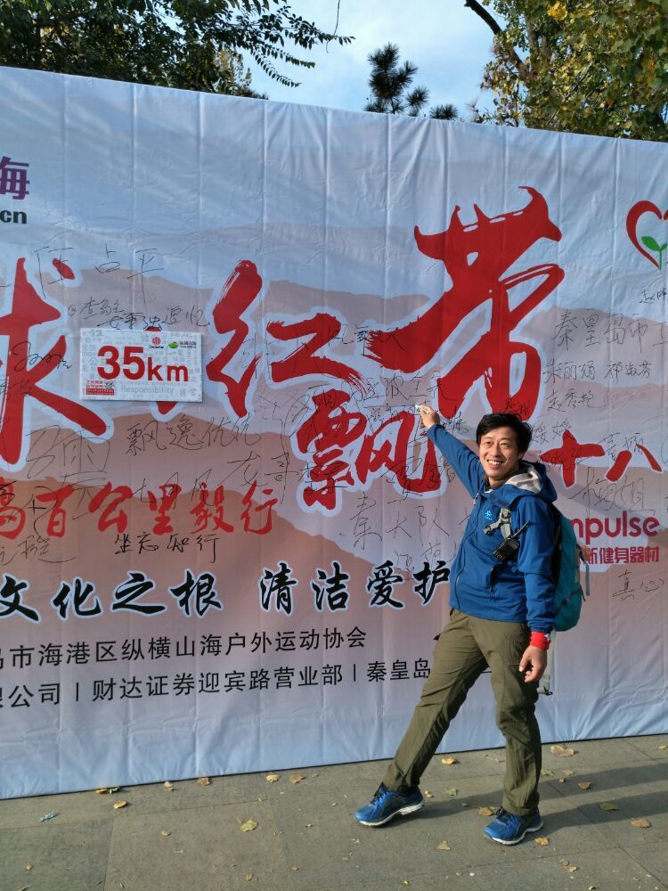 2016年10月23日,为纪念中国工农红军长征三大主力胜利会师,缅怀先辈,继承和发扬红军精神,由秦皇岛纵横山海户外和志愿者联盟主办的秦皇岛百公里毅行大型系列公益活动。这次活动吸引了国内近600余户外爱好者参加。最终有20余人完成了100公里毅行。美丽的山海关夜幕下的秦皇岛,我们来了起/终点(0/100km):人民广场我也上个镜出发前的合影加油!我们行!出发!圆明山上秀一秀第2签到点(13km):圆明寺第2签到点(22km):毛家沟国槐天下雄关--山海关第3签到点(35km):榆关抗战纪念碑缅怀先烈,为自己加油!为自己加油!眺望远方为景色而奔狂美丽的海滨第5签到点(43㎞):老龙头与六足生辉、我