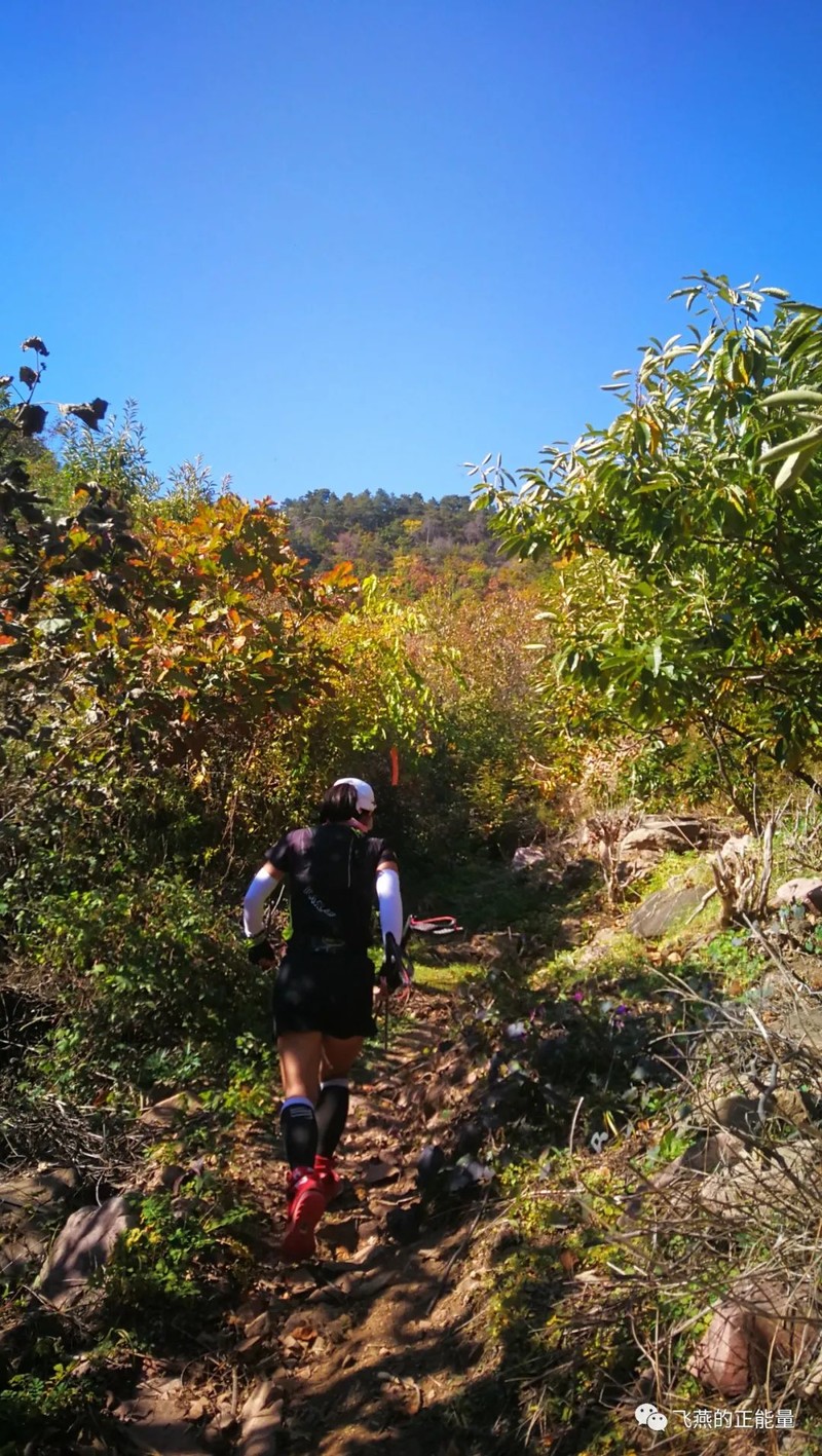 在15公里的山上追上小段和涂涂,小段应该是累了,她说大腿有点酸,我让她吃上我给她的排酸丸,但是我没减速,让她跟上我,跟了一段后她就没跟上。涂涂在后面等着她,我也很放心,就没管她了——其实我还想着没准小段跟快乐的鱼一样,后返劲儿,后面没准能追上来呢。