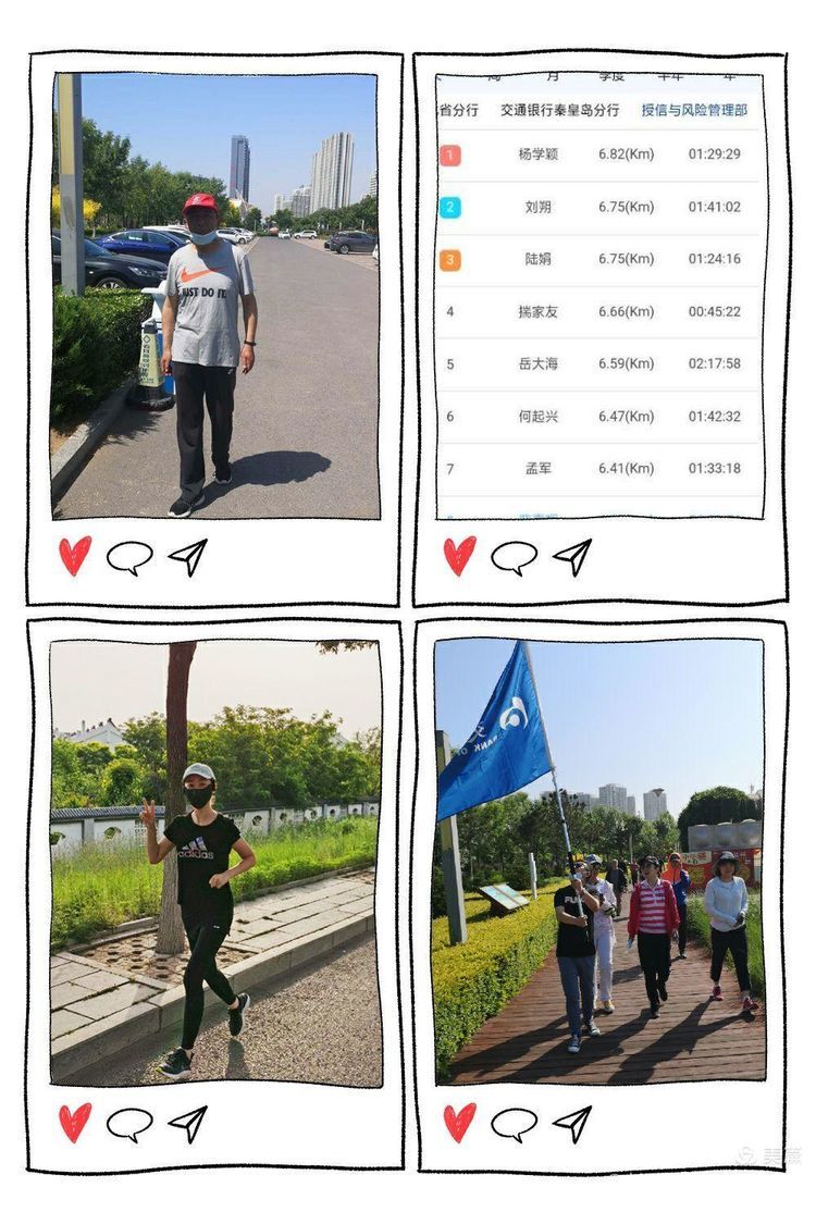 交通银行秦皇岛分行党委书记、行长王卫东现场助力,副行长刘刚及二十多位员工代表参加。考虑到疫情原因不宜聚集,此次健步走特地采取了统一时间、分散进行的方式,副行长马奎也在唐山同大家一起健走。