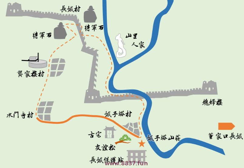 •9:30-12:00 健跑打卡时段:沿途穿梭城子峪、水门寺、龚家楼、长城村(旧河口关)等长城古老村落,完成四大地标打卡,沿途设置路标,需自行寻找打卡点;最后返回集合地点,凭完整的打卡